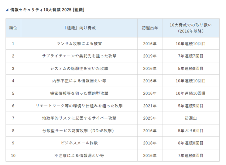 ※1 情報セキュリティ10大脅威 2025[組織編]